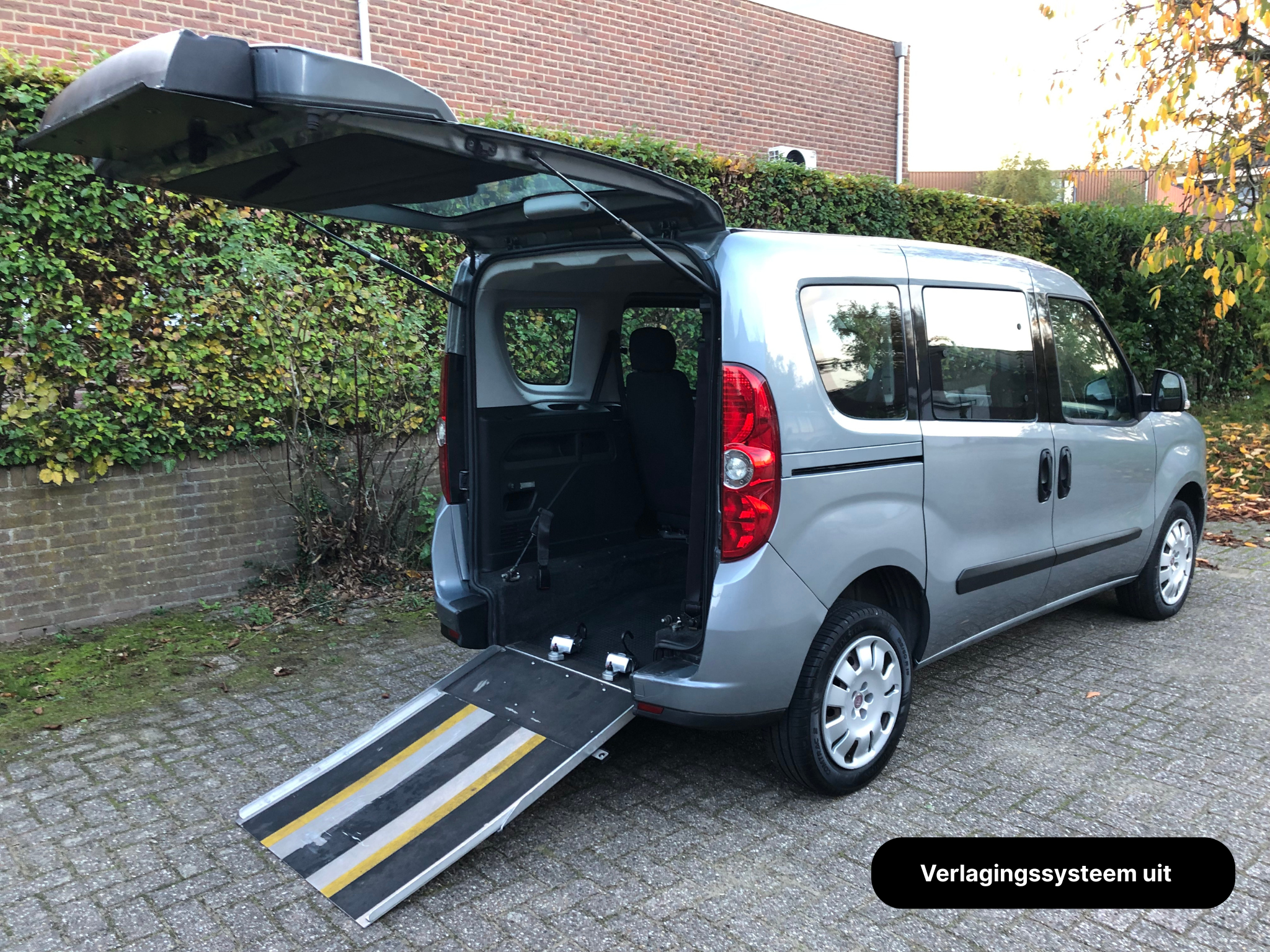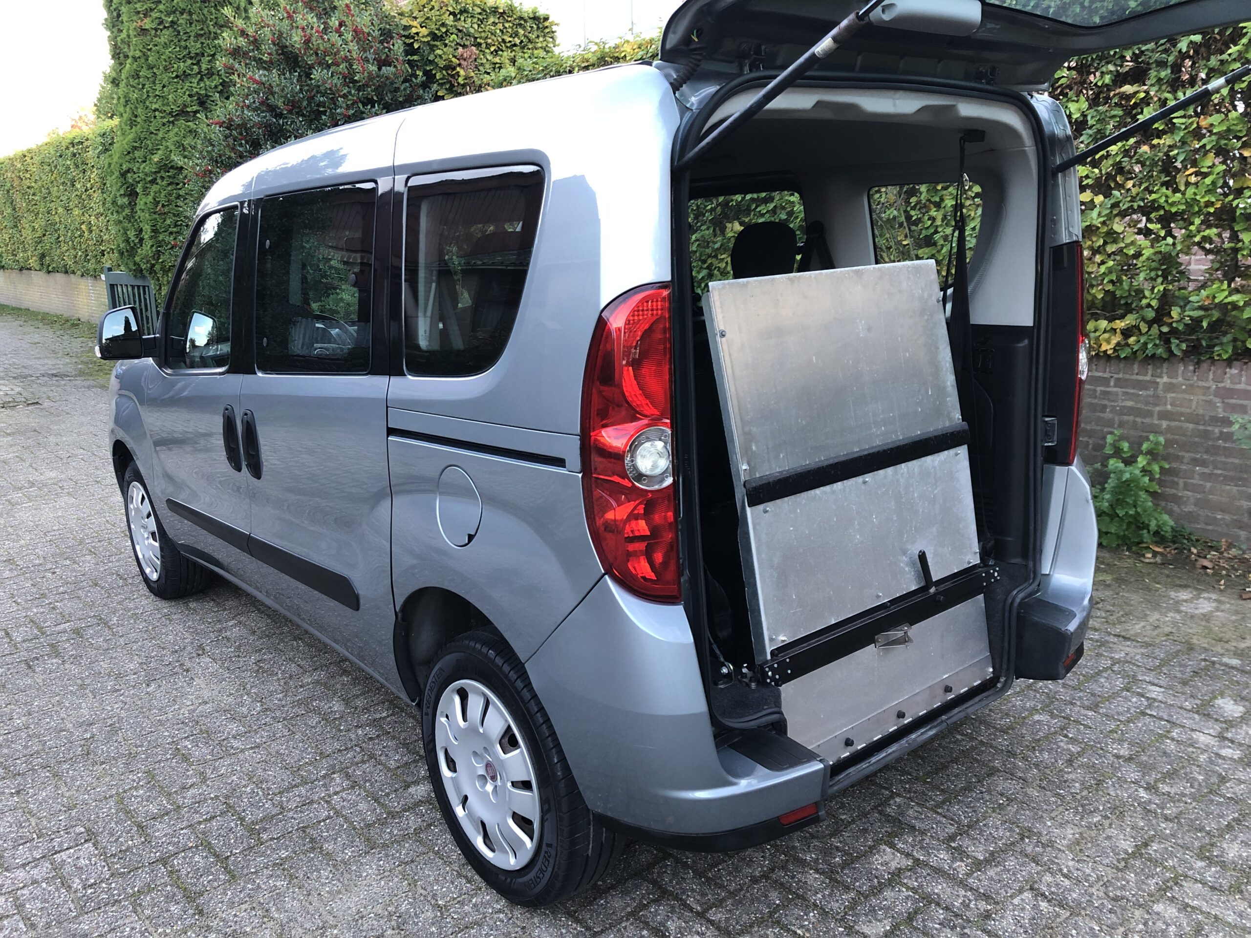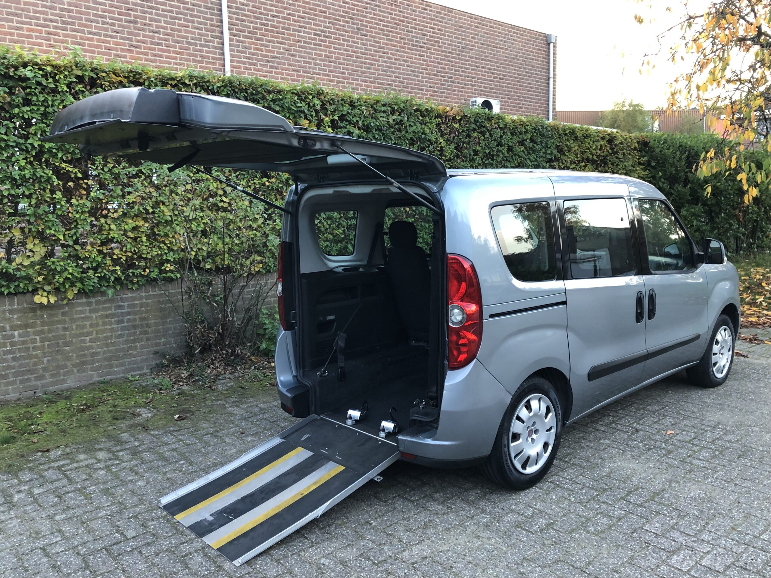 Deze Fiat Doblo is volledig aangepast als rolstoelauto (afkomstig van Bierman), en biedt 4+1 plaatsen in de auto.