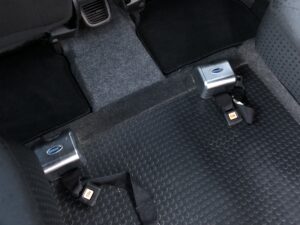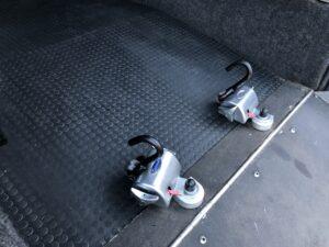 De achterzijde is met een druk op de knop verlaagbaar voor versoepeld in- en uitrijden. De rolstoelplaats is op 4 punten vastzetbaar.
